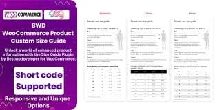 And much more! BWD Product Custom Size Guide For WooCommerce empowers online retailers to provide detailed and tailored size information, improving customer confidence and reducing returns. With its rich feature set, this plugin ensures a seamless integration of custom size guides into the WooCommerce shopping experience.